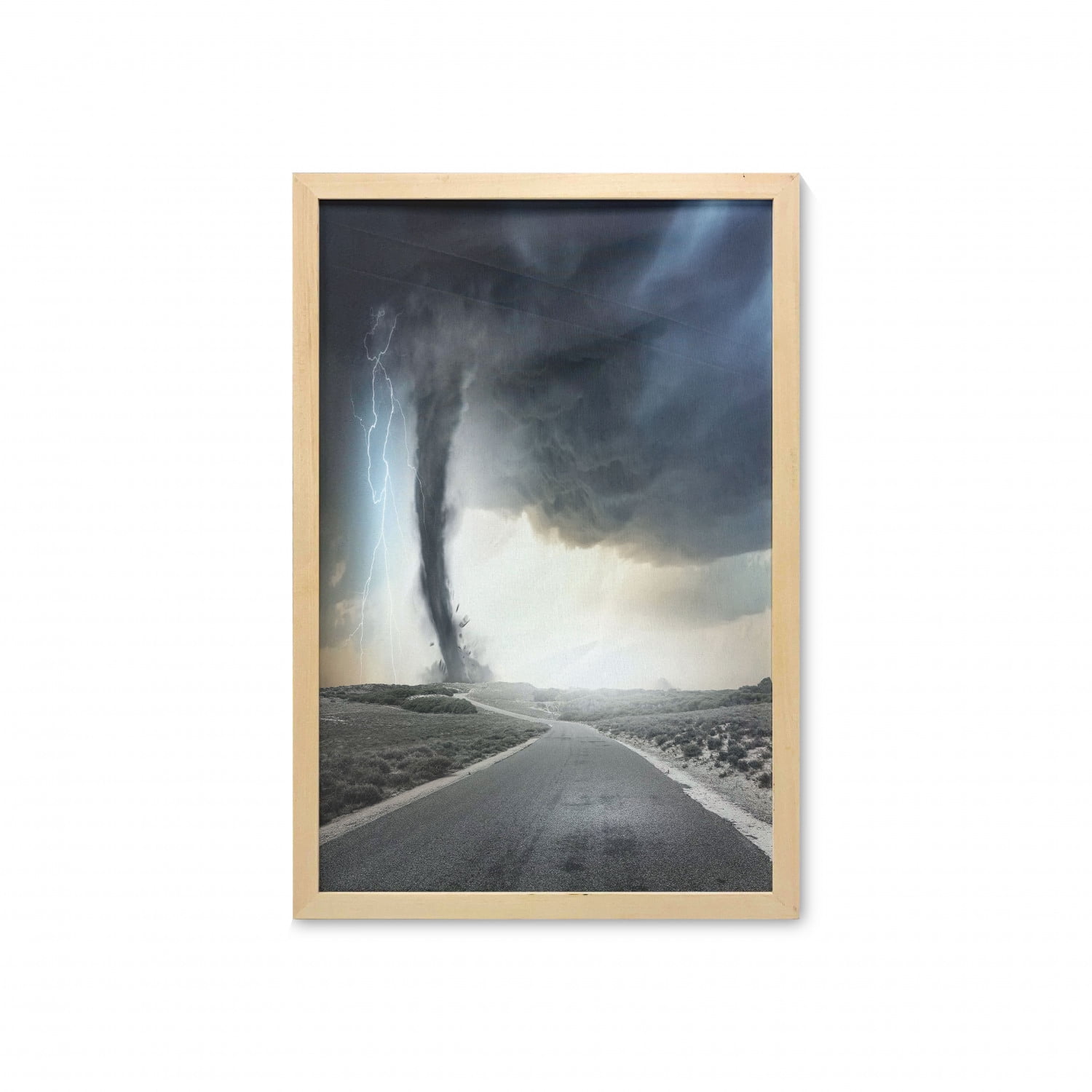 Nature Wall Art With Frame Black Tornado Funnel Gas And Thunder Rolling On The Road Fume Disaster Monochrome Print Printed Fabric Poster For Bathroom Living Room 23 X 35 Grey By Ambesonne